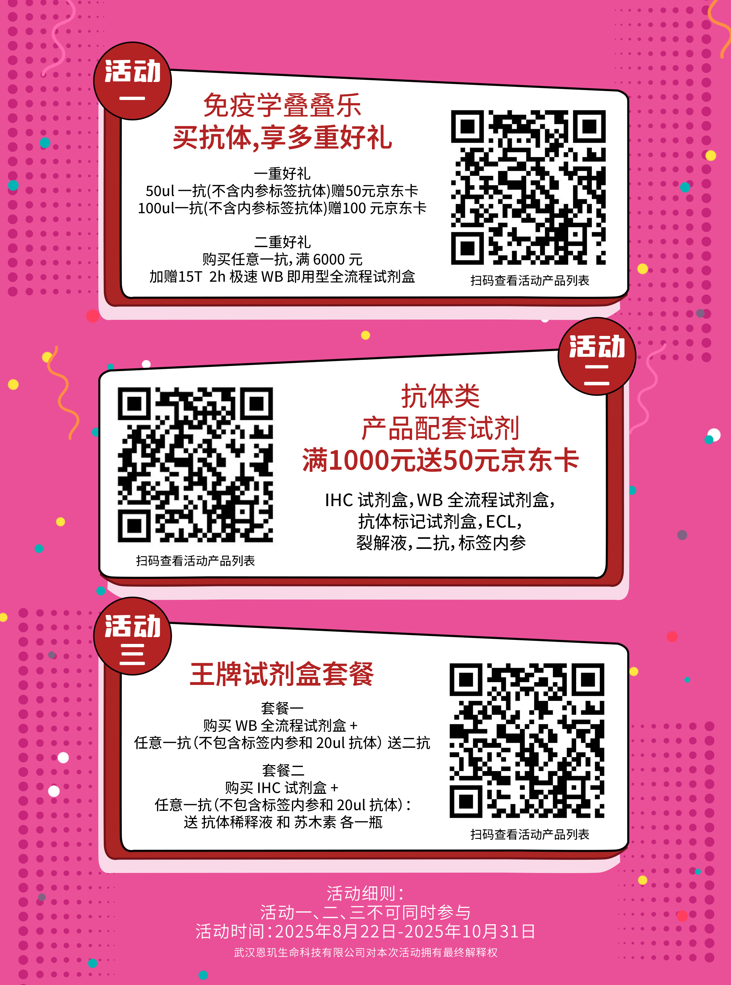 活动三:配套试剂每满1000元送50元京东卡