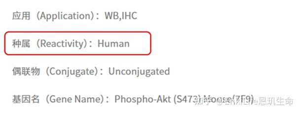 严格匹配样本种属:确认抗体说明书中Reactivity(种属反应性)一栏,明确标注实验样本的物种,例如人源样本需选择标注Human的抗体,小鼠样本需选择标注Mouse的抗体,不可随意跨种属使用——例如,兔抗人p-AKT Ser473抗体,可能无法识别小鼠样本中的p-AKT Ser473,即使二者序列同源性较高,也可能因氨基酸差异导致识别失败。