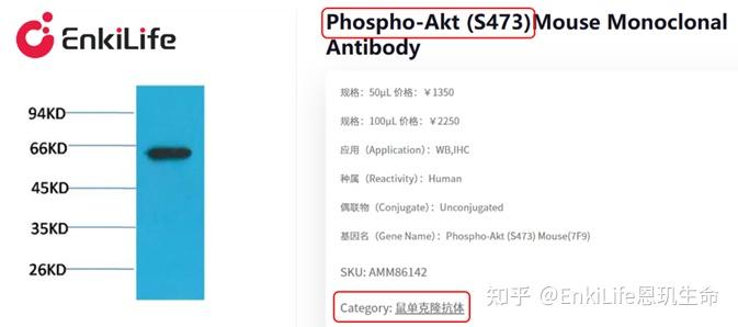 磷酸化抗体的序列适配注意事项:磷酸化抗体的表位不仅包含磷酸化位点,还包含位点周围的氨基酸序列,这部分序列决定了抗体的特异性——例如,两种针对p-AKT Ser473的抗体,若其识别的表位包含Ser473周围不同的氨基酸序列,可能导致其中一种抗体与其他同源蛋白的磷酸化位点发生交叉反应,出现杂带。因此,选择时需查看说明书中的抗原序列,确认其包含目标磷酸化位点及周围的特异性序列,同时可通过查阅文献,确认该抗体在同行的实验中是否存在交叉反应的情况。
